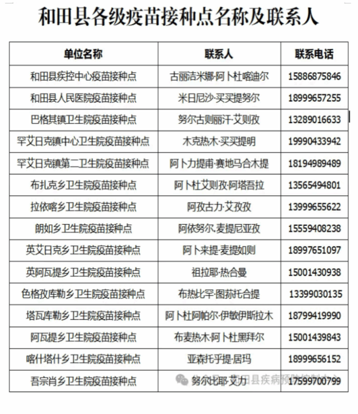 3.咨询电话:和田县疾病预防控制中心免疫规划科