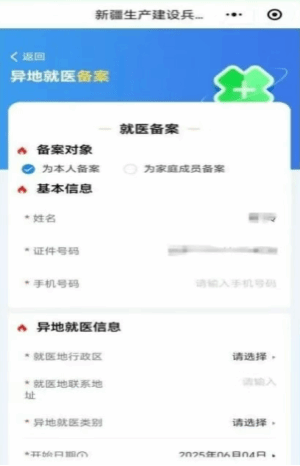 就医地是指你要去哪看病,参保地选十四师昆玉市。