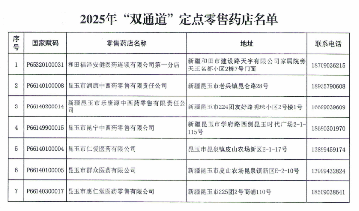 第十四师昆玉市“双通道”药店: